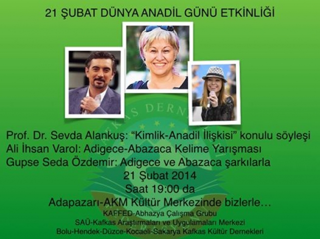 Kaffed Abhazya Çalışma Grubu ile Sakarya Üniversitesi Kafkas Araştırmaları ve Uygulamaları Merkezi, Bolu-Hendek-Düzce-Kocaeli-Sakarya Kafkas Kültür Dernekleriyle birlikte “21 Şubat Dünya Anadil Günü” münasebetiyle anlamlı bir etkinliğe imza atmaya hazırlanıyorlar.