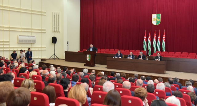 “Abhazya halkının alacağı karardan korkmadığımız için referadum kararı aldık. Politik ve sosyo-ekonomik kalkınma yolunda ülkemizin bugünlerde yaşamakta olduğu karmaşıklık göz önüne alındığında; tüm insanlarımızın istek ve ihtiyaçlarına cevap verebilmemiz, ülkemizdeki ulusal uyum ve istikrarı koruyabilmemiz, anayasanın garantörü olarak göreve devam edebilmemiz için, halkın iradesiyle göreve gelmiş hükümetimizin konsolidasyonu gerekmektedir. Abhazya halkını referanduma çağırıyorum. Abhazya’nın çok uluslu bilge insanlarının, binlerce cana mal olan Abhaz Devleti’ni güçlendirerek, refah seviyesini artırarak yoluna devam etmesini sağlayacak doğru kararı vereceklerine eminim.”