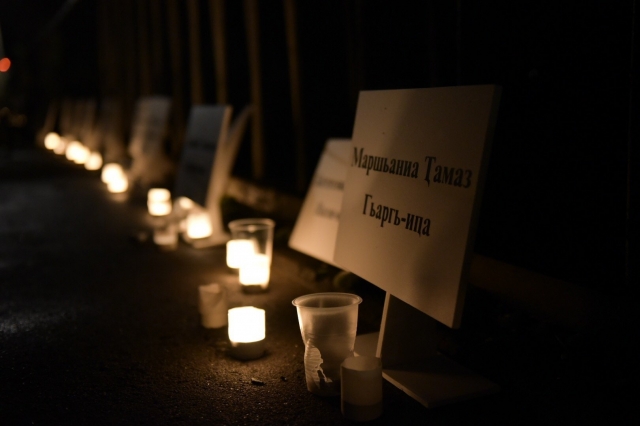 Daha sonra şehitlerin anneleri ve yakınları biraraya gelerek, çatışmaların en şiddetli gerçekleştiği yerlerden, Sohum girişinde Gumısta Köprüsü’ndeki anıt mezarda 222 mum yaktılar, dualar ettiler.