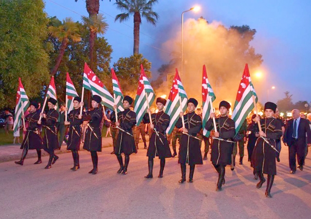 Abhazya’nın başkenti Sohum’da sabah saatlerinde Geri Dönüş Devlet Komitesi (Demografya) önünde toplanan bir grup Türkiyeli, Suriyeli Abhazlar, Adige ve Abhaz bayraklarıyla sahildeki sürgün anıtına yürüdüler. Burada bekleyen kalabalık halk kitlesi, protokol ve okullardan, resmi dairelerden gelen temsilci gruplarla birlikte tören alanını doldurdu. Küçük gruplar halinde anıta çiçekler kondu. Ağıtlar eşliğinde günün anlam ve önemi ile ilgili konuşmalar yapıldı, şiirler okundu, duygulu anlar yaşandı. Cumhurbaşkanı Raul Hacimba, bazı Bakan ve Milletvekilleri, resmi kurum ve sivil toplum temsilcileri de tören alanında hazır bulundular.