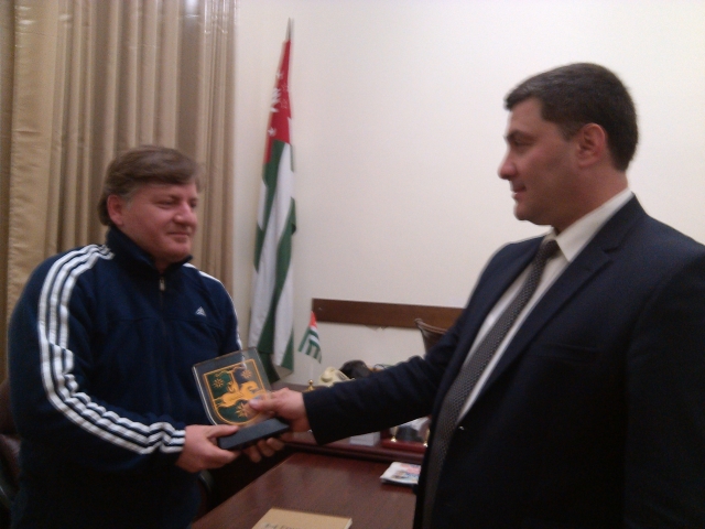 Abhazya Başbakan Birinci Yardımcılığı görevine atanan Şamil Adzınba’nın, Abazg Futbol Kulübü başkanlığından ayrılması nedeni ile toplanan kulüp yönetimi yeni başkan olarak Ali Anşba’yı seçti. Abhazya Futbol Federasyonu’na bu yeni seçimin bildirilmesinin ardından bugün Abazg’ın halef selef başkanları bir araya geldiler. Duygulu anların yaşandığı devir teslimde Şamil Adzınba gözünün arkada kalmadığını, Ali Anşba’nın emaneti daha da ileriye götüreceğinden emin olduğunu ifade etti. Adzınba ayrıca kendisi gibi diaspora kökenli olan Ali Anşba’ya ve onun şahsında Abazg Spor Kulübüne Abhaz Diasporasının her türlü desteği vereceğini umduğunu belirtti. Kısa bir konuşma yapan Ali Anşba ise üstlendiği görevin zorluklarının farkında olduğunu ama elinden gelenin en iyisini yapmaya gayret edeceğini, ilk hedeflerinin takımın daha profesyonel bir kurumsal yapıya kavuşmasını sağlamak olacağını söyledi. Abazg Kulübü’nü Abhazya’nın futbol markası haline getirmekte kararlı olduklarını da ifade eden yeni başkan Anşba hem selefi Adzınba’nın, hem de kulüp yönetim kurulu üyelerinin teveccühlerine layık olmaya çalışacaklarını belirterek konuşmasını bitirdi.
